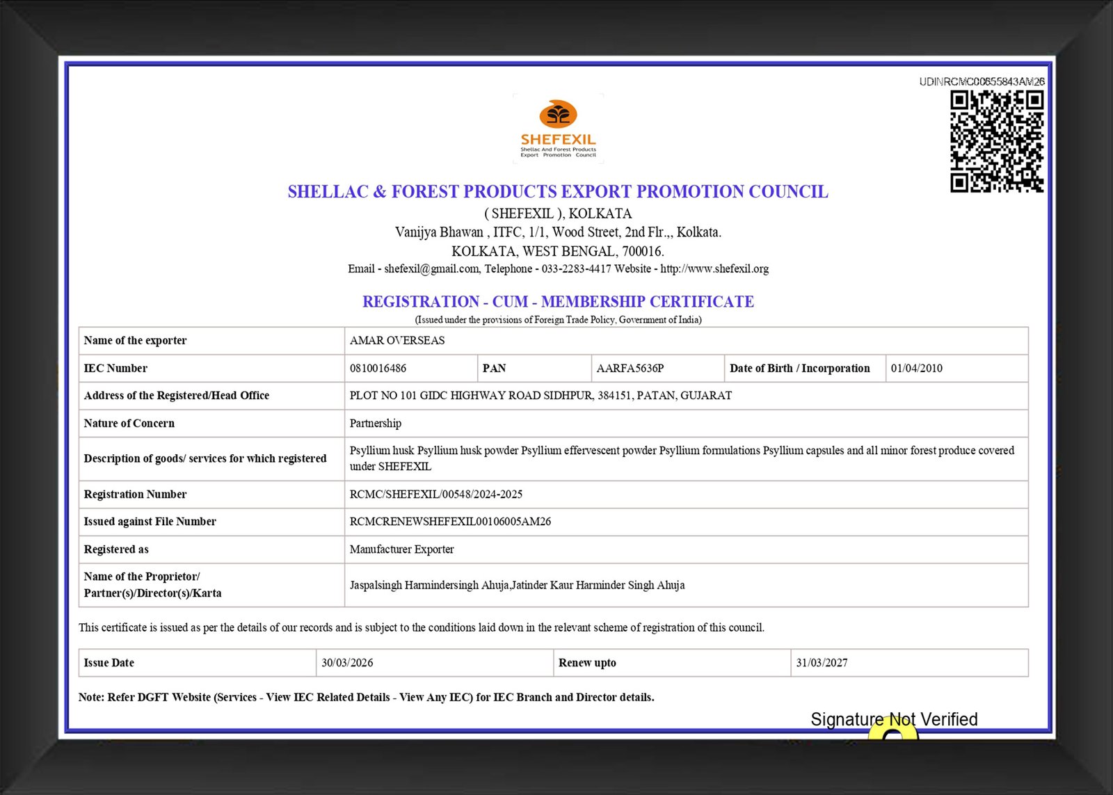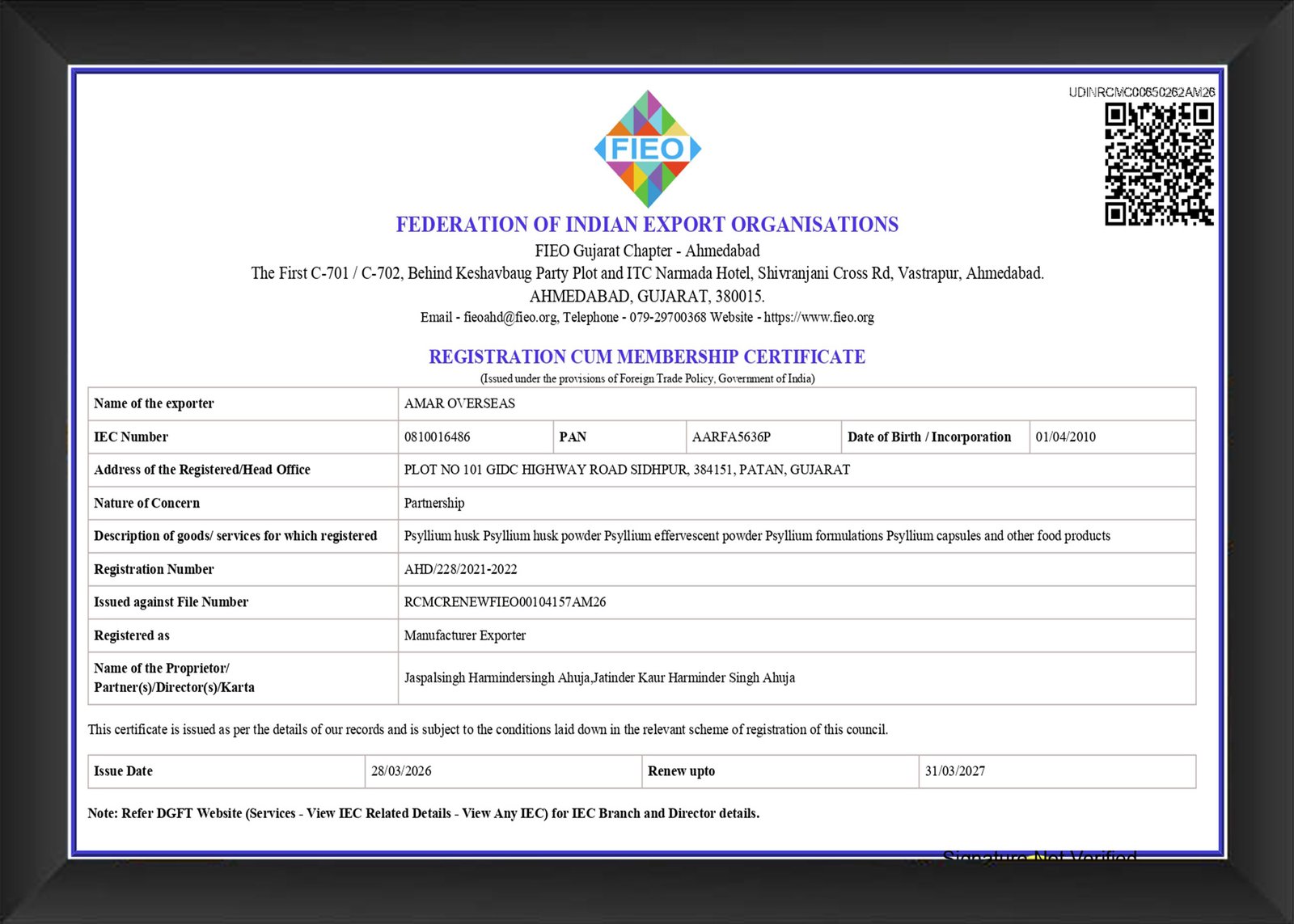 Amar Overseas Plot No. 101, G.I.D.C., Highway Road, Sidhpur-384151, Gujarat, India.